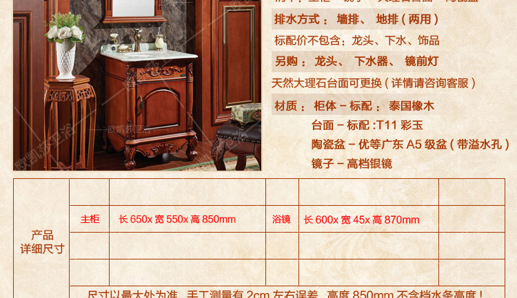我司實木浴室柜采用進口的泰國橡膠木(行業(yè)統(tǒng)稱為泰國橡木)和美國紅橡,請親知悉!