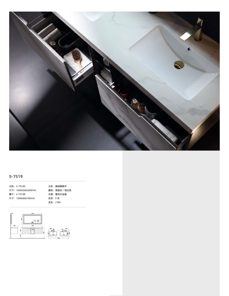 輕奢浴室柜S-7519 1600mmx550mmx500mm