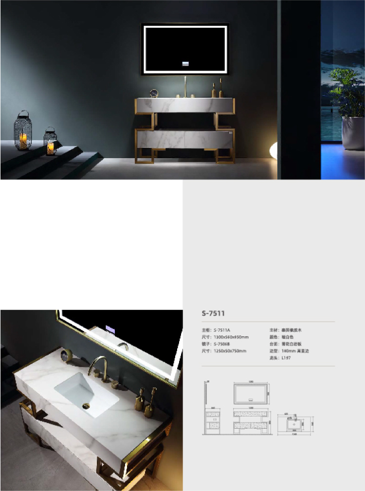 輕奢浴室柜S-7511 1300mmx560mmx850mm