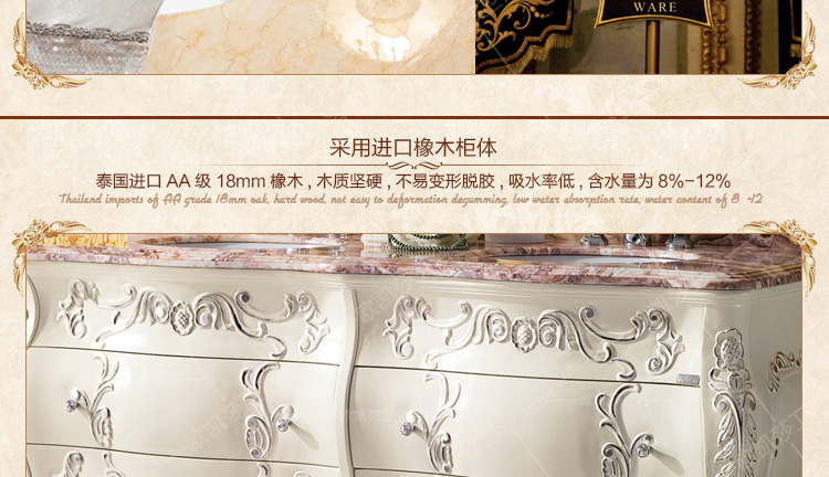 我司實(shí)木浴室柜采用進(jìn)口的泰國(guó)橡膠木(行業(yè)統(tǒng)稱(chēng)為泰國(guó)橡木)、美國(guó)紅橡、白蠟?zāi)尽踅鹉,具體參詳產(chǎn)品材質(zhì)介紹,請(qǐng)親知悉!歡迎您點(diǎn)擊下方立即采購(gòu)按鈕聯(lián)系我們,了解詳情!