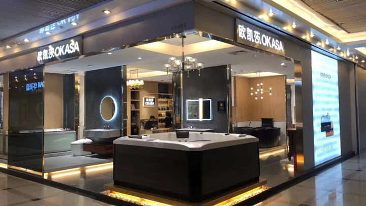 OKASA歐凱莎順德旗艦店位于佛山最高端的建材家居商場--羅浮宮,店內(nèi)面積近200平方,產(chǎn)品涵蓋歐式、美式、新中式、北歐、輕奢現(xiàn)代等主流浴室風(fēng)格,搭配整體浴室空間展示。