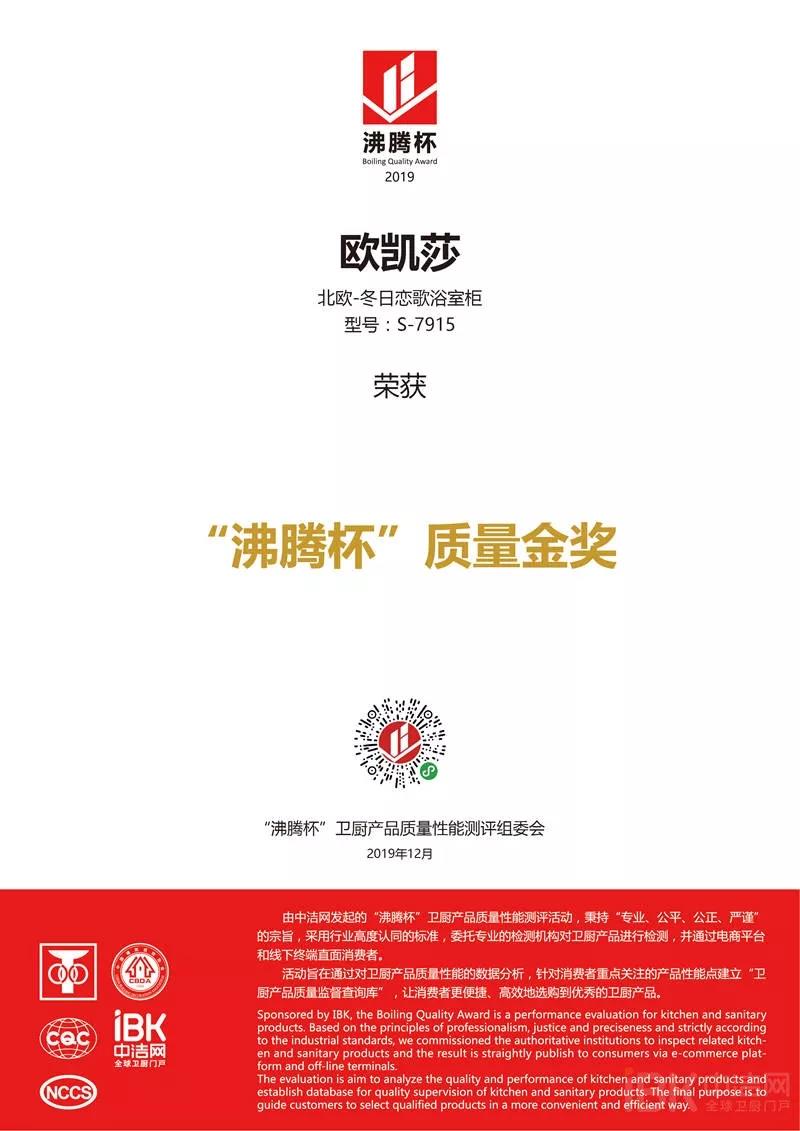 收獲質(zhì)量金獎與多項標桿,這是對歐凱莎產(chǎn)品質(zhì)量的極大肯定。