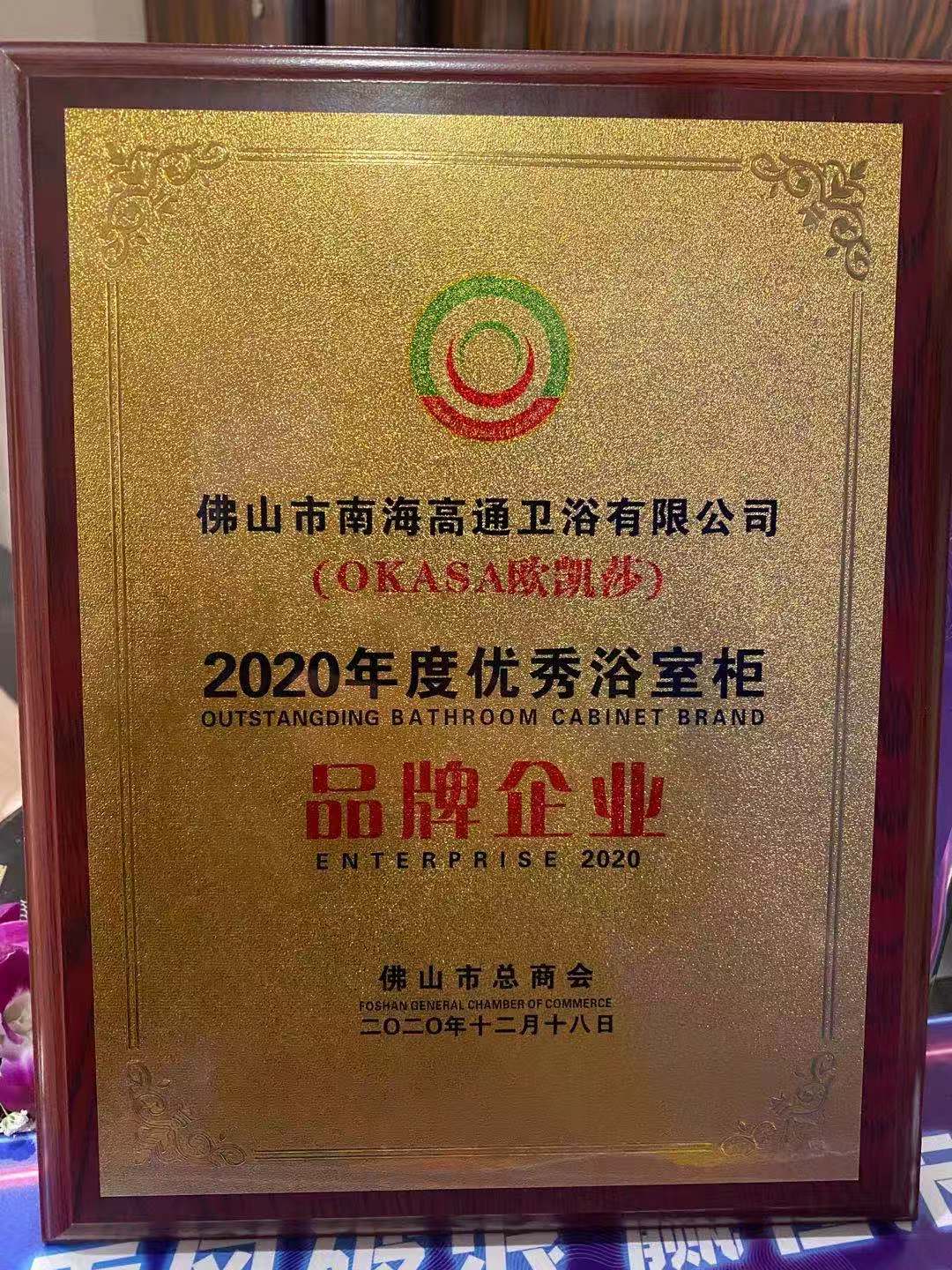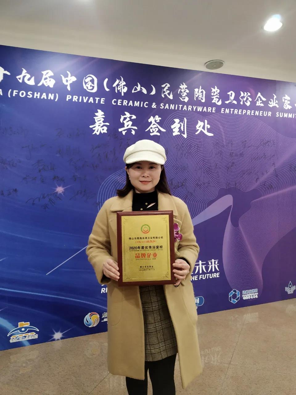 在此次年會中,歐凱莎憑借在行業(yè)的優(yōu)秀表現(xiàn),榮獲了“2020年度優(yōu)秀浴室柜品牌企業(yè)”獎項。