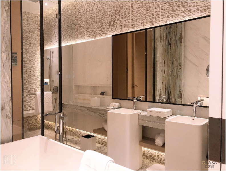 毋庸置疑,肯定給人帶來的是奢華質(zhì)感五星級體驗了。寬敞的浴室空間,配備一應(yīng)俱全,墻面、燈光相互配合,超大鏡子搭配大尺寸浴室柜,顯得高級又氣派!