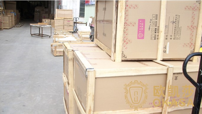 臺盆、柜鏡都是屬于易碎品,那么產(chǎn)品會不會在運(yùn)輸中容易破碎?歐凱莎衛(wèi)浴浴室柜都是采用紙箱+木架箱的包裝模式,雙重包裝雙重保障,還有什么放心不了。